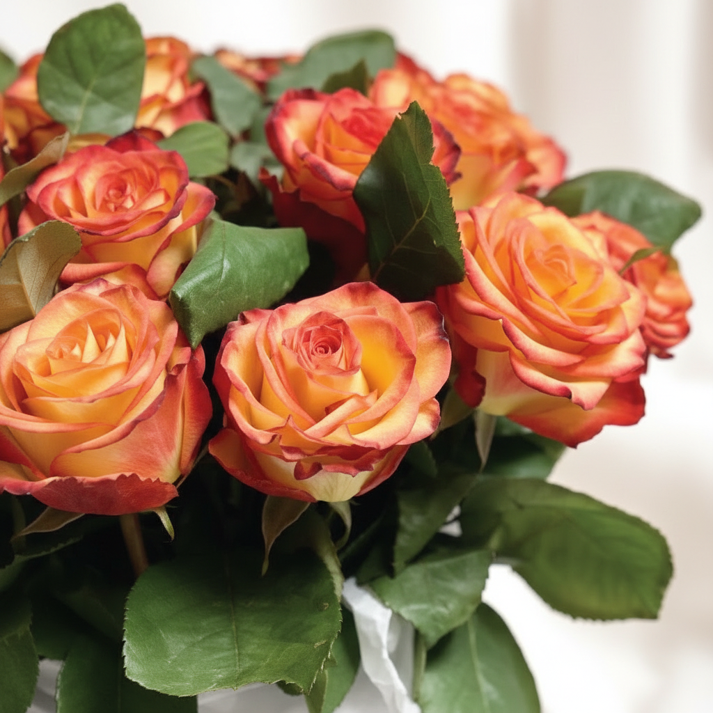A luxurious arrangement of premium orange roses, elegantly arranged to showcase their vibrant color and delicate beauty. Perfect for any special occasion.