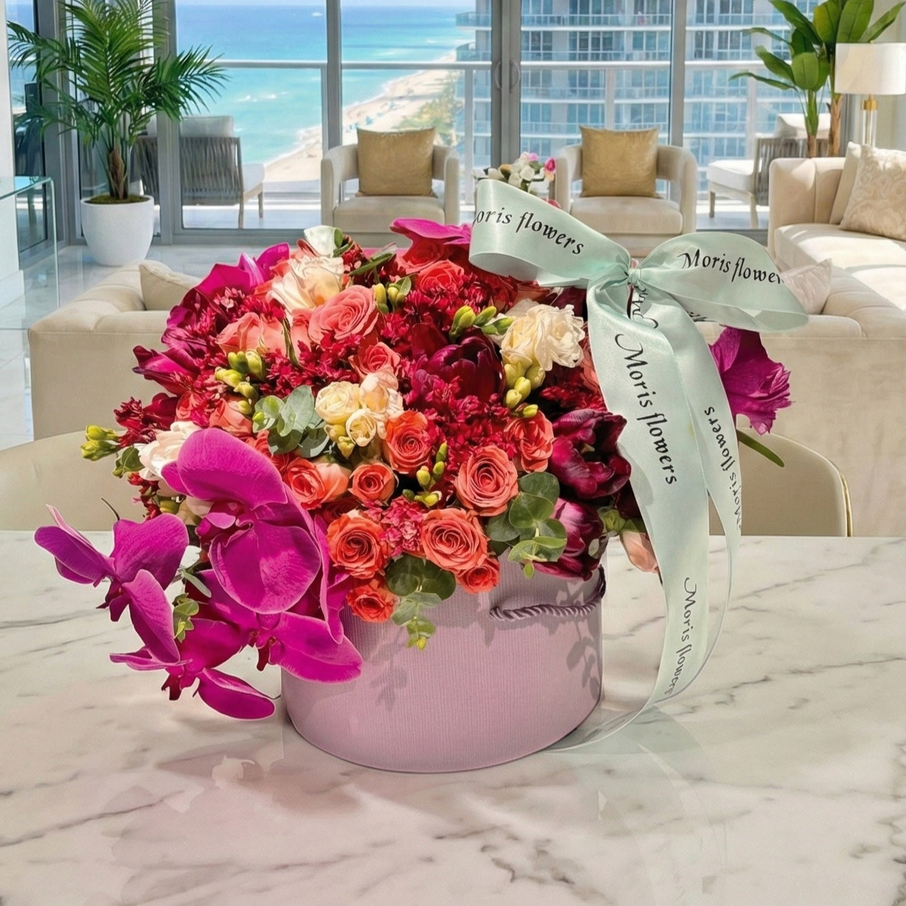 At Moris Flowers, we pride ourselves on delivering high-quality, fresh flowers, arranged by our team of professional florist-designers. We offer free delivery within 20 miles and same-day delivery to ensure your flowers arrive at their freshest.